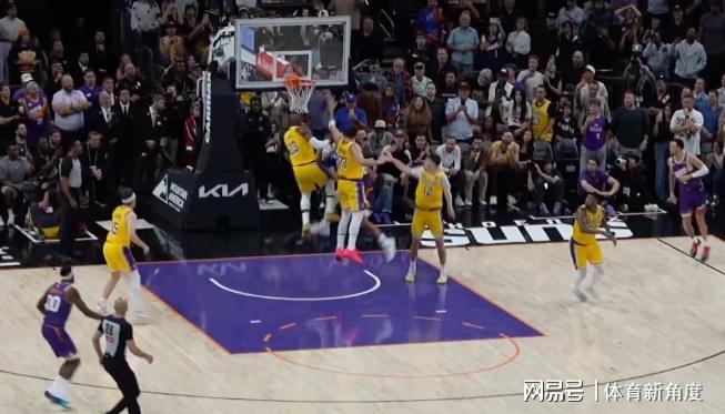 更戏剧性的是詹姆斯的包夹选择,两位湖人防守人竟在空中上演"自相残杀",生生为阿伦腾出传球通道。慢镜头回放显示,当詹姆斯杀入禁区形成二打一局面时,第三名防守者的加入反而制造出真空区——这不就像那句老话么?"一个和尚有水吃抬水吃,三个和尚...哎,没水咯!"